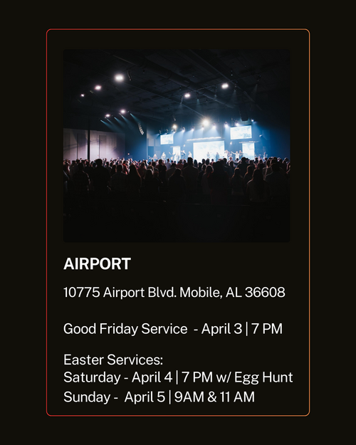 Registration for Egg Hunts & prize giveaways at Kid’s Easter services. Must be present at Kid’s Easter services for a chance to win prizes.