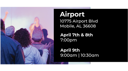 Sundays at 9 & 10:30am at both campuses ; Thursdays at 7pm Airport Campus